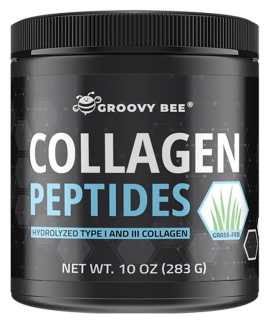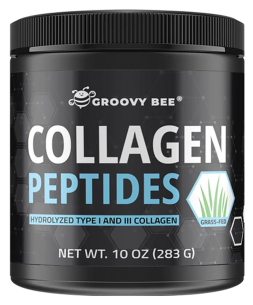 Groovy Bee Collagen Peptides contains hydrolyzed Type I and Type III collagen, both of which support healthy skin, bones, muscles, joints, tendons, and other organs.